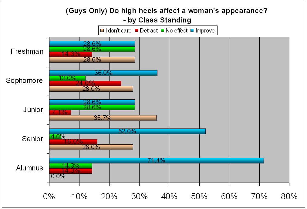 9) 42% of guys believe heels improve a woman’s appearance. Only 17% believe heels detract from a woman’s appearance.